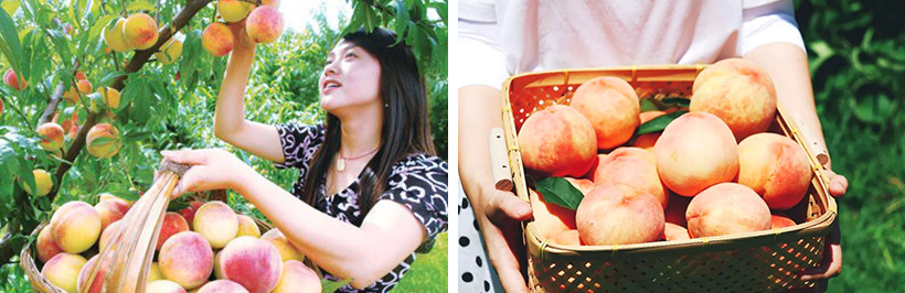 【團建玩法:水蜜桃采摘】梅花洲景區的鳳橋鎮是遠近聞名的「水蜜桃之鄉」,徜徉在萬畝桃園里,親手摘下又大又甜的水蜜桃,享受盛夏賜予的甜蜜果實。